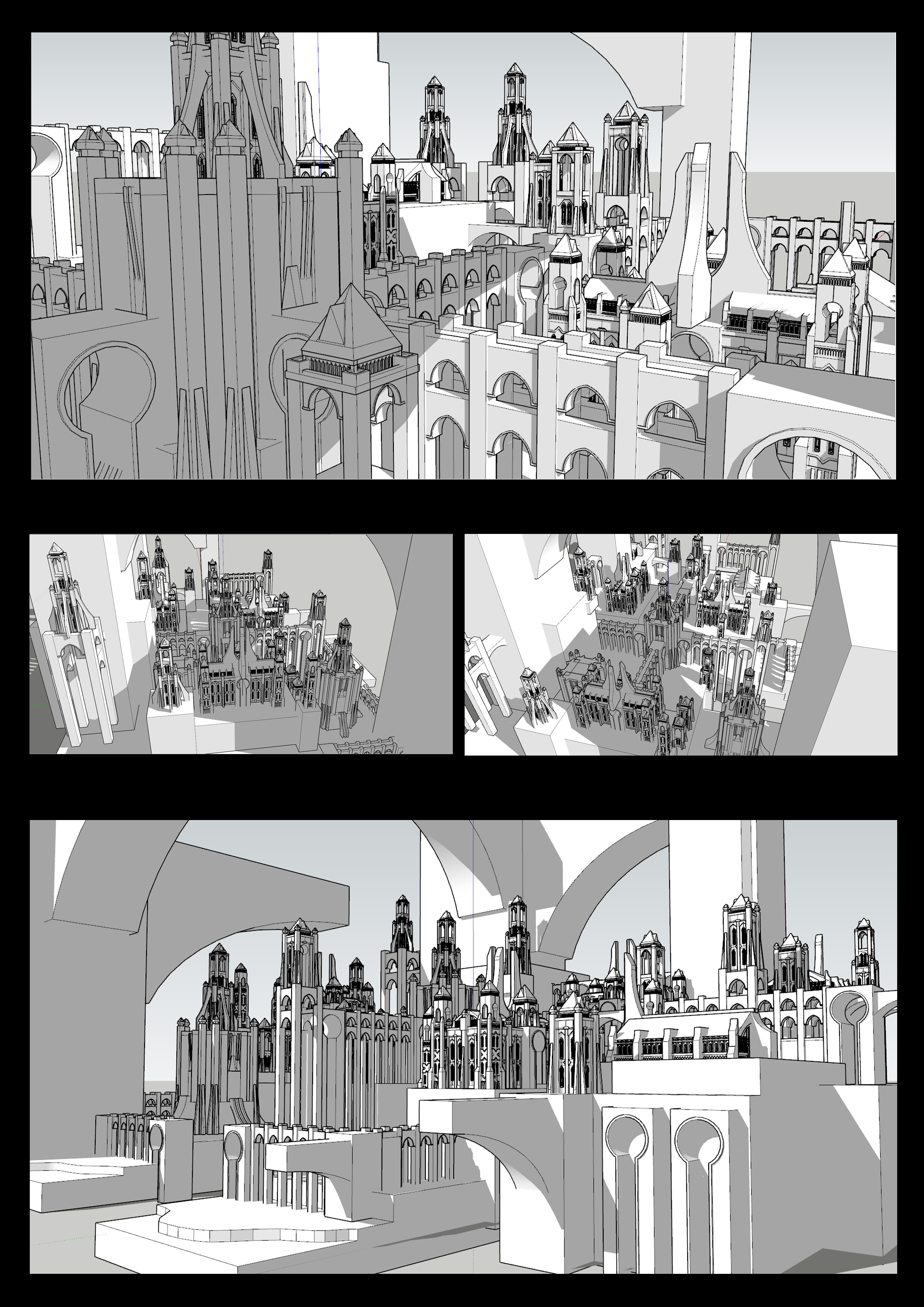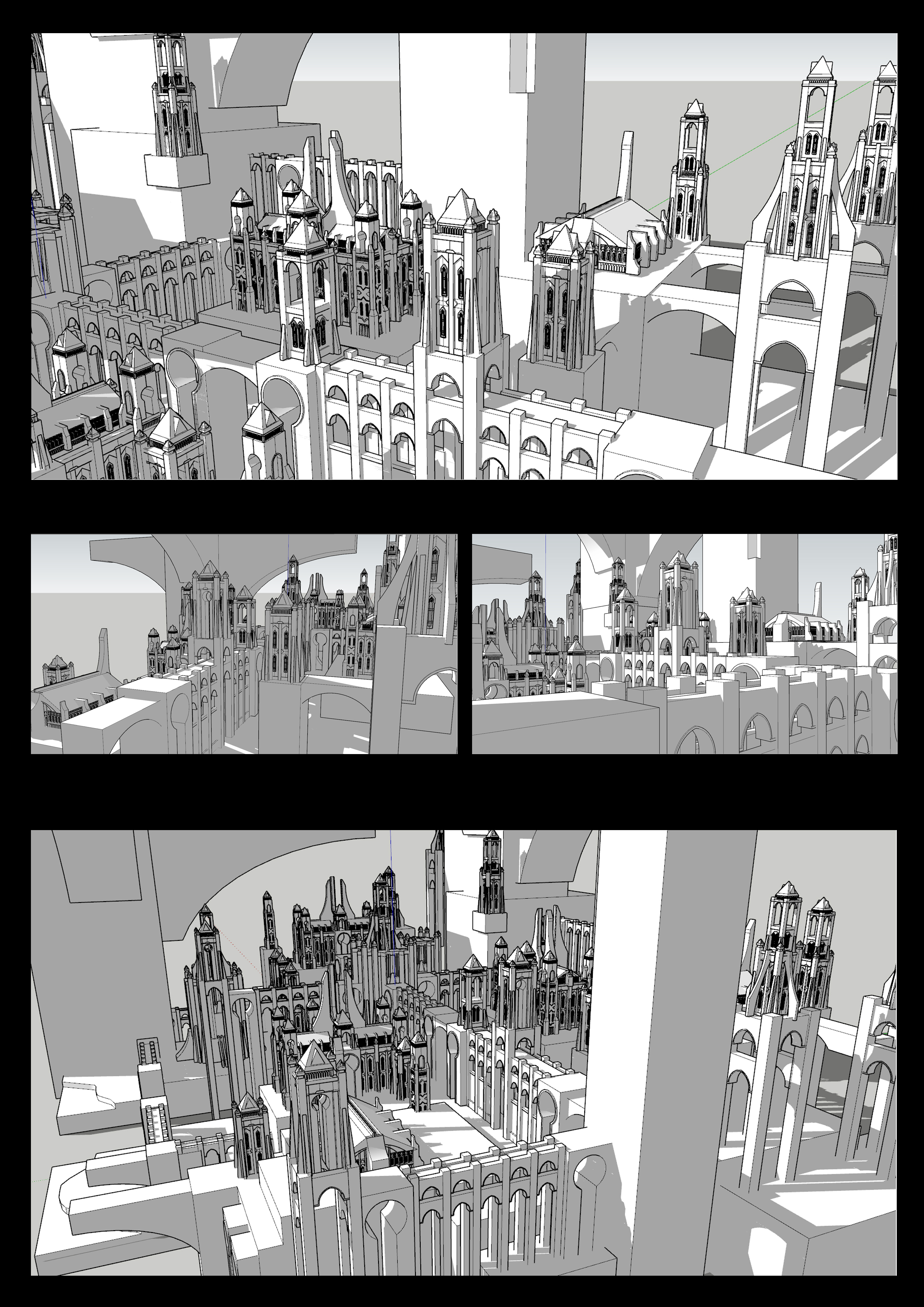 모듈구성 / 기본적인 건물들 몇개의 조합으로 도시규모의 스케일을 꾸민다.
