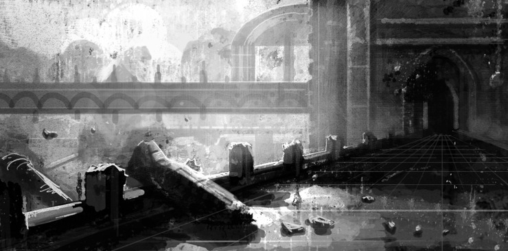 컨셉은 무너져내리는 성을 멋진구도로 담아내고자 시도한건데