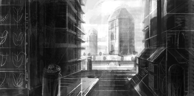 그래서 거의 처음으로 흑백으로만 된 구도 러프스케치를 해봤다.