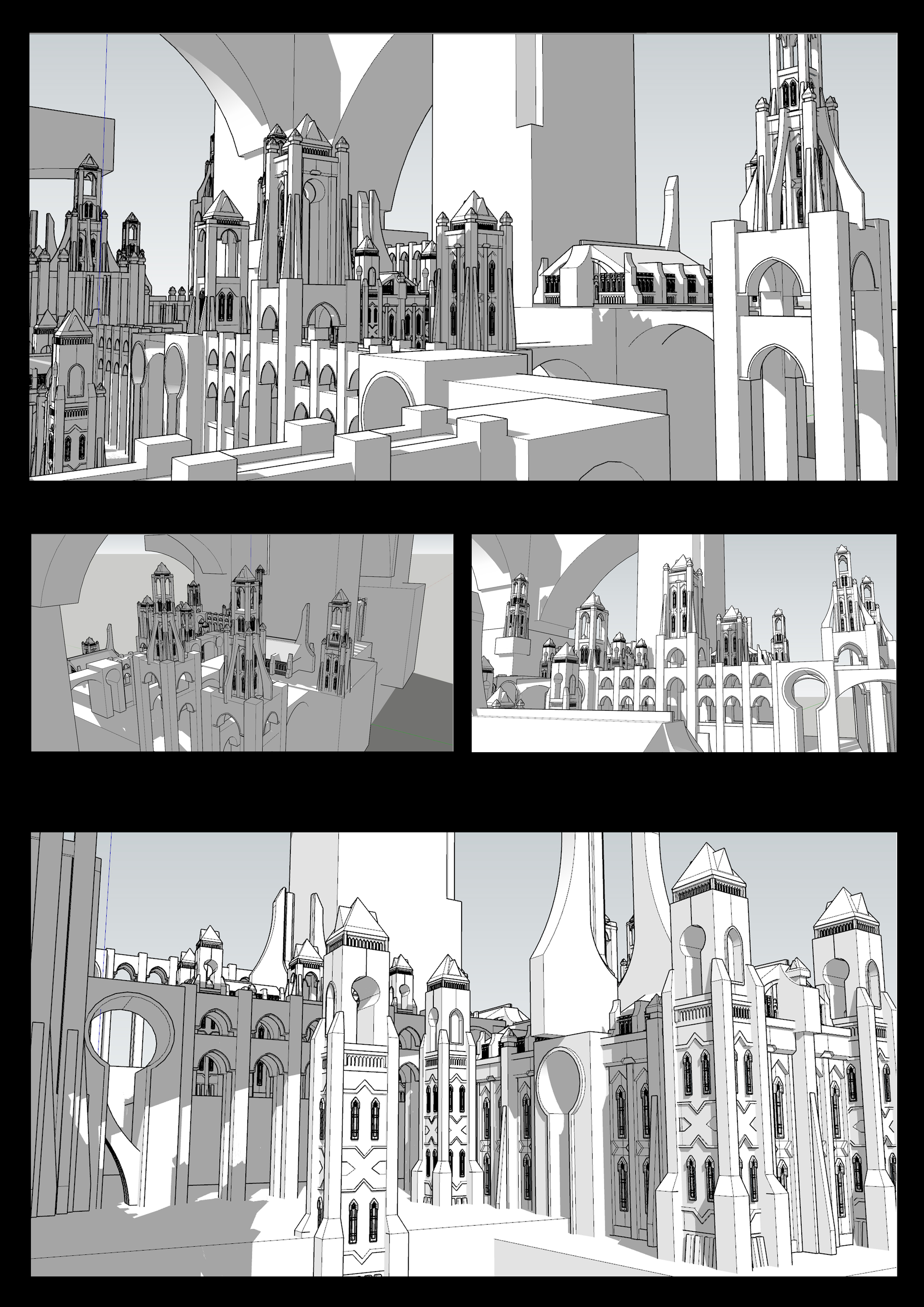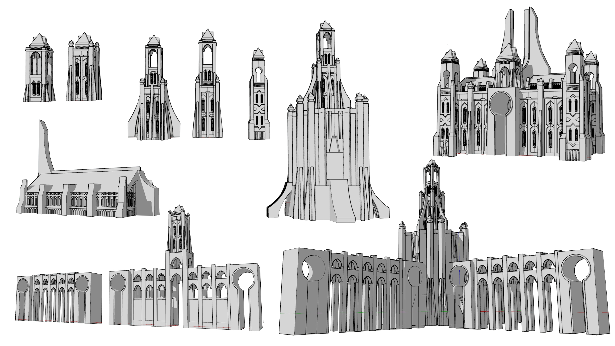 모듈구성 / 기본적인 건물들 몇개의 조합으로 도시규모의 스케일을 꾸민다.