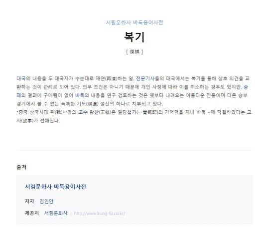 복기는 바둑에서 많이 쓰이는 의미로 본인이 뒀던 바둑을 다시 복기하는 작업이다.