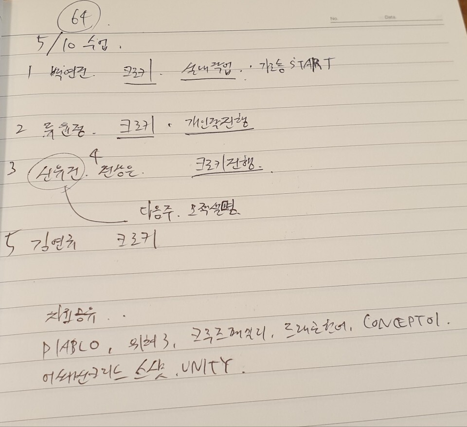 하나하나 다 메모하고 기록했다. 스터디방법, 게임쪽 연봉, 실무에서 하게되는일 등등